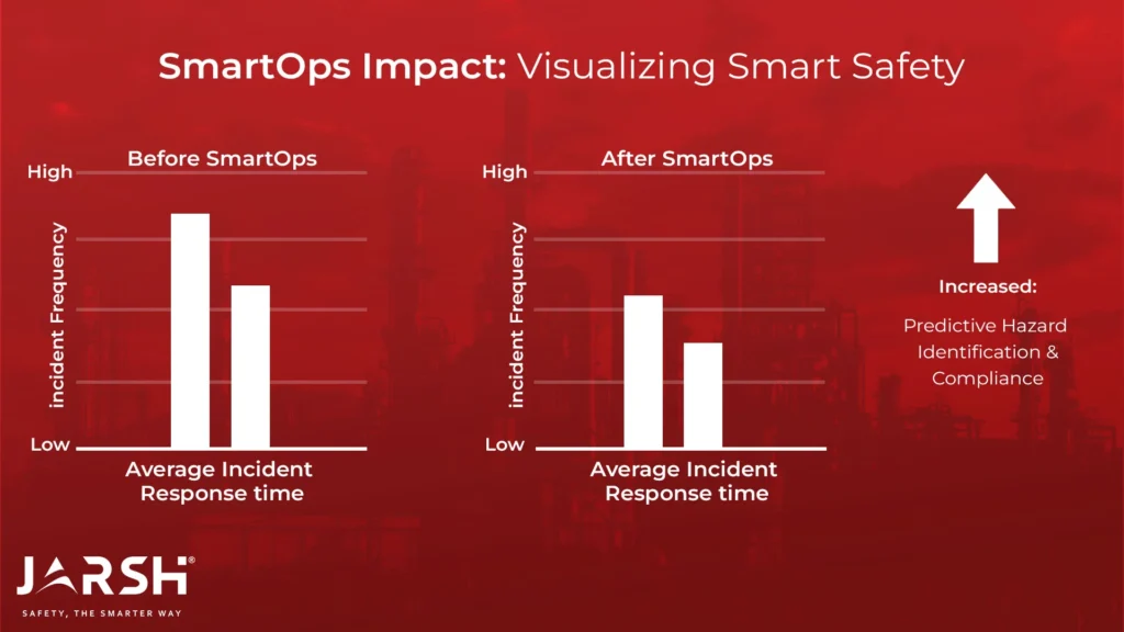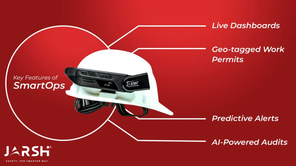 Jarsh’s SmartOps ecosystem is built to overcome the challenges of remote worksites by integrating IoT-enabled wearables, connected cameras, AI-powered audits, and real-time alerts.