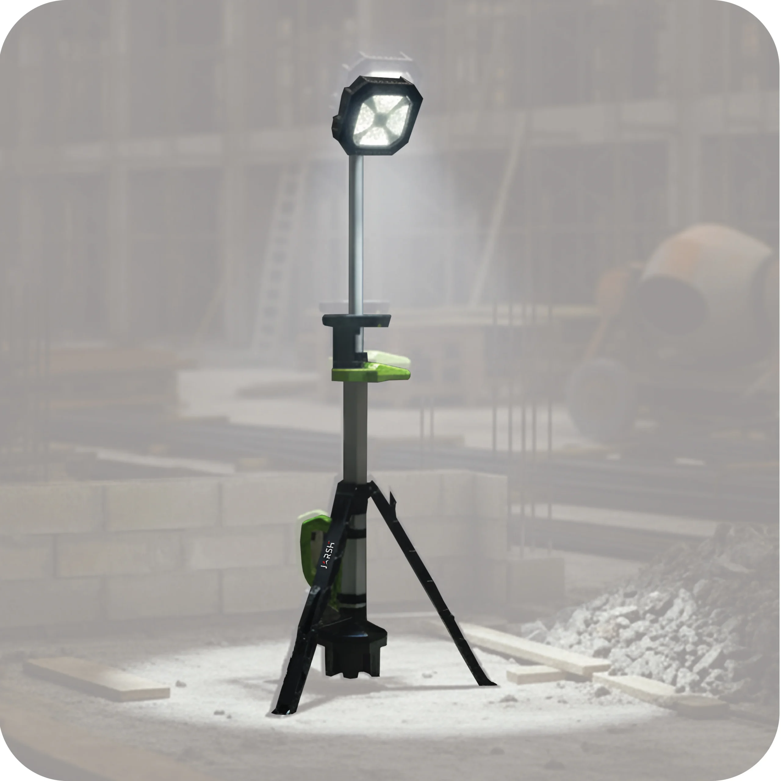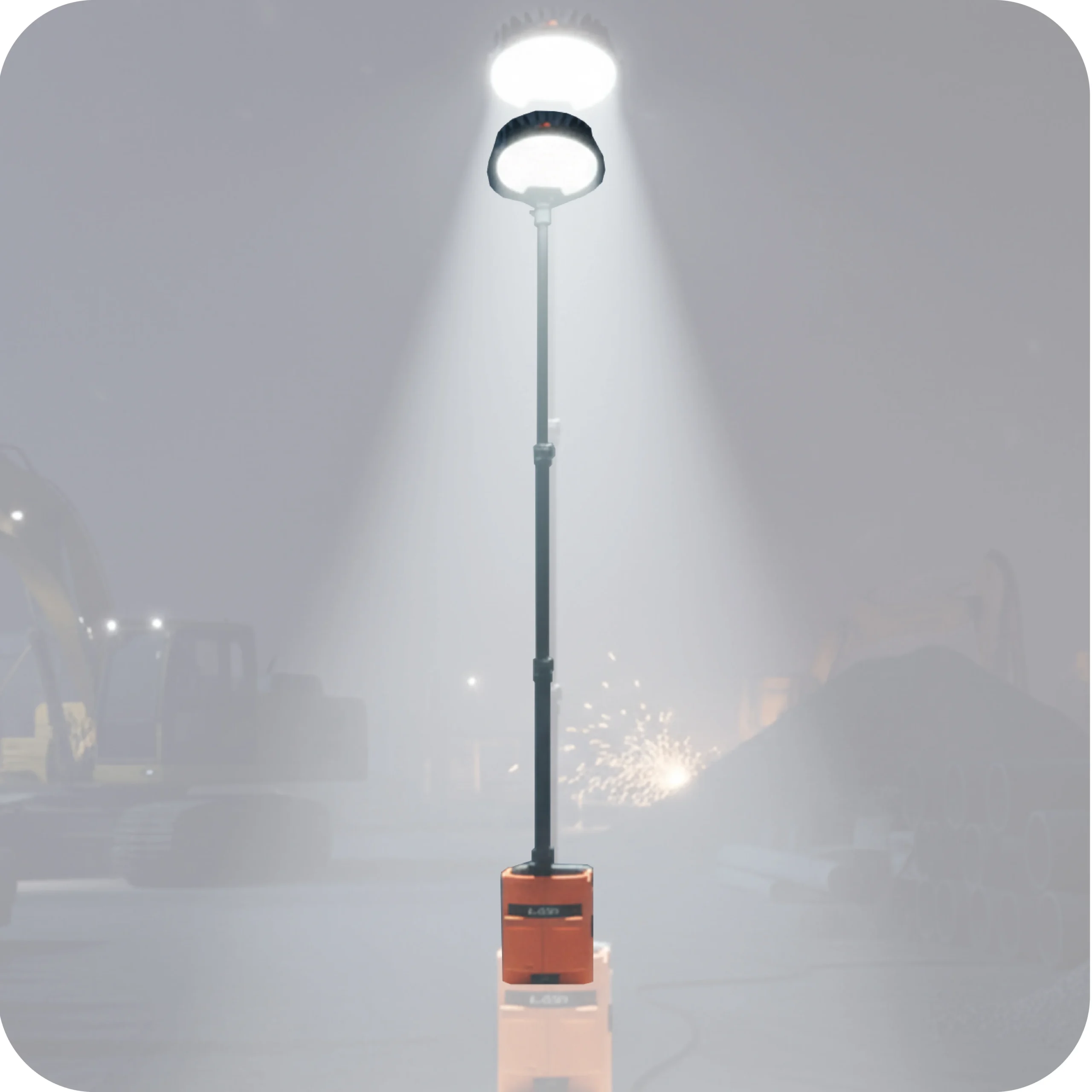 A 6ft portable and foldable light tower with up to 10,500 lumens output and a USB power dock for industrial use.