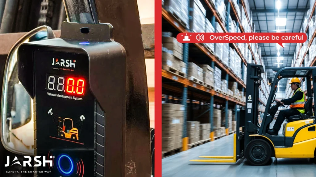 With the JVM-Speed system installed, every vehicle is continuously monitored for speed. The moment an operator exceeds a zone limit, the system triggers a voice alert and flashing warning – preventing an accident before it happens.